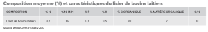 Le lisier de bovins laitiers est un produit résiduaire des exploitations laitières. Lorsqu’il est utilisé comme engrais organique, le lisier de bovins laitiers est dynamique dans sa composition et son association avec le biote. La composition en éléments nutritifs du lisier de bovins laitiers confère à ce déchet son potentiel de fertilisation. Pour chaque kilogramme d’azote appliqué au champ sous forme de fumier, il faut moins d’engrais commerciaux pour répondre aux besoins des plantes à un stade de développement donné. En outre, le carbone organique agit comme un amendement du sol pour en améliorer les propriétés physiques et certaines recherches ont montré que le fumier de bovins laitiers pouvait augmenter le pH de certains sols acides à court terme. Texte de Nicole Giles, représentante SATEG